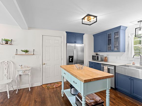 Come enjoy the extra space of this home within the desirable Colonial Green neighborhood, with zero HOA fees. Park your car in the garage and head out back to enjoy sunshine on the deck before you spend some time by the firepit. Or head into the first floor with a recently renovated kitchen which includes new appliances, large farmhouse sink, Bosch range hood, and butcher block island that looks into the dining room. The hardwood floors throughout this level will also bring you past the half bath and laundry room, to the oversized living room, extending the width of the home and comforted with one of the two pellet stoves included. Upstairs is a full bath and two bedrooms, one larger than the other, both with ceiling fans. Also upstairs is the cathedral ceiling primary suite with a ceiling fan, bathroom and walk-in closet. In addition to the above ground living space is a full basement with a pellet stove heated office that opens up to the back yard, along with a spacious insulated family room. Finish off the ceilings down there to add approximately 400 extra square feet, totaling over 2000 square feet of living space with plentiful daylight.