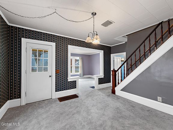 What a cutie in Granville! This 3-bedroom/2-full bath Colonial sits proudly on a corner lot with a detached garage for the perfect perch in this lovely little Upstate New York village near the Vermont border. Total of 1,245 sq ft. Eat-in kitchen boasts oak cabinets, dishwasher, stone counters & storage pantry. New flooring, carpeting and original hardwoods. Claw-foot tub, enclosed sun porch, covered rear porch, slate roof because Granville is the heart of natural slate country! Truly a great way to be part of this enclave close to the beautiful Mettowee River, museums, restaurants & other attractions.