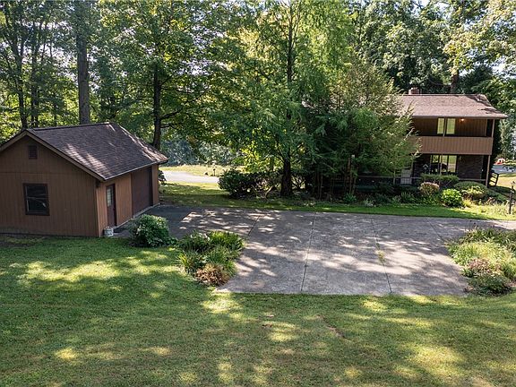 GET AWAY FROM IT ALL!! THIS HOME IS SITUATED ON A HUGE AND BEAUTIFUL CORNER LOT OFFERING PRIVACY AND ROOM TO BREATHE. THERE ARE 2 DETACHED GARAGES, ONE IS A 3 CAR GARAGE WITH A CEMENT PAD AND OVERHEAD STORAGE. THE OTHER GARAGE IS AN OVERSIZED ONE CAR GARAGE WITH A WORK BENCH AND TONS OF STORAGE SPACE. WITH A CHARMING AND UNIQUE DESIGN, THIS HOUSE HAS 3 BEDROOMS AND 2.5 BATHS. THE MAIN LEVEL OFFERS A LARGE COUNTRY KITCHEN, STONE FIREPLACE, A LAUNDRY AREA, HUGE PANTRY, A BEDROOM AND A HALF BATH. THE SIDE STAIRCASE LEADS TO THE UPSTAIRS WITH AN INTERIOR BALCONY WALK WAY. THE SECOND FLOOR BEDROOM HAS PATIO DOORS THAT OPEN TO THE UPPER LEVEL BALCONY. A BATHROOM AND ANOTHER BEDROOM COMPLETES THE SECOND FLOOR. THE BASEMENT IS FINISHED WITH A BAR AND A FIREPLACE AND A FULL BATHROOM. THIS PROPERTY CONSISTS OF 4 SEPARATE PARCELS ON ONE DEED. THE HOUSE AND BOTH GARAGES HAVE NEW ROOFS IN 2022.