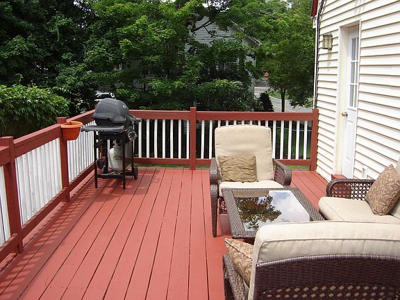 This well maintained centrally located home has everything todays home buyers are looking for. Beautiful cherry cabinet kitchen with stainless steel appliances, Granite counters and TWO Breakfast Bars that flank both the open living room and dining room which has a beautiful enamel gas stove!. This OPEN first floor layout makes entertaining or just hanging out with the family easy. Upstairs has 3 good size bedrooms and an updated full bath. To finish off this perfect home you have an above grade finished basement with a large family room ( could be used as a teen suite) and 1/2 bath with laundry. Lets not forget CENTRAL AIR and GAS HEAT!! This lovely home sits on a large yard that is fenced in with a great sized deck for summer entertaining or sit by the fire pit in the cooler weather. Dont over look the TWO driveways to accomodate older kids that drive or visitors! Dont miss out! schedule your appointment today this beautiful home won't last!