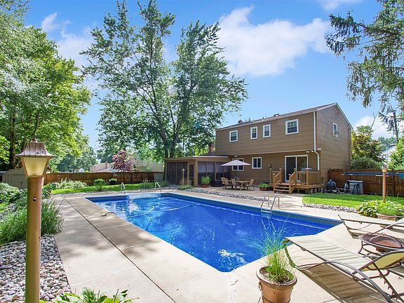 LIVE SERENE in this meticulously maintained colonial on oversized private, manicured lot with green acres behind. Enjoy summers entertaining in the in ground heated pool and screened porch with 6 seat hot tub. This lovely 4 bedroom home features kitchen with newer granite counters, stainless appliances, crown molding and tin backsplash that opens to the sunken family room with refaced brick hearth and wood burning fireplace. Upgrades include hard wood floors under carpets, newer windows and full basement. Master with attached bath and 2 closets. You won't be disappointed.