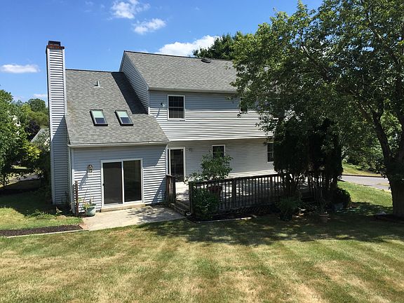 Absolutely stunning Banbury colonial on premium corner lot. This home features two brand new luxury bathrooms, updated kitchen with granite counter tops, new stainless steel appliances, modern tile and stone back splash, and a finished basement. The main level has hardwood floors throughout, crown molding and is freshly painted. The family room has a vaulted ceiling, wood burning fireplace and newer slider out to a patio. The kitchen also has a slider out to a very large deck. There is also a formal dining room, laundry room, powder room, and home office to complete this level of the home. Upstairs, there are 4 spacious bedrooms with fresh paint, new carpet, new ceiling fans with lights and large closets. The master suite includes a GIGANTIC walk in closet with recessed lighting. The master bath features a huge tile shower with frameless shower glass, and double sinks. The hall bath has also been remodeled and features a marble vanity and tile floors and tiled tub surround. The basement is finished and has a large room for entertaining while the rest of the basement is perfect for storage. Newer roof, replacement windows, and many other new features make this home the best buy in today's market!
