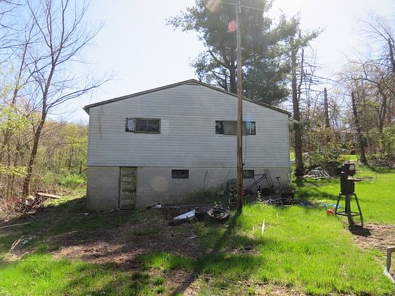 Ranch style home with a front covered porch. Located on a private and wooded lot.