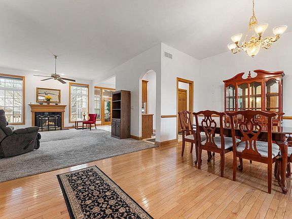 Welcome to the amenity-filled Greens at Aberdeen neighborhood, and this thoughtful main floor living brick front ranch with high ceilings and open living plan. Living room features a gas fireplace for those extra chilly nights. Kitchen with dining nook, ample cabinetry with side pantry, planning desk, island and a lot of natural light from window transoms. Stainless steel kitchen appliances (2020), including 5 burner gas range with griddle. Butlers Pantry with a sink, perfect for entertaining and added storage, is just off the kitchen on the way to the dining area. Main floor primary bedroom suite, with tray ceiling, and in the ensuite double sinks, separate jetted tub and shower, and walk-in closet. Two more bedrooms on the main floor add convenience for family, guests, or as den/office space. Glass patio door to beautiful high ceiling 4-season sunroom with knotty pine beadboard for relaxation with morning coffee or evening beverages. Main floor laundry/mudroom with sink, counters and cabinets for storage. Garden-level basement features large windows, with a bathroom, a separate flex room for workout/guests/crafts or secluded office work. Hefty amount of storage space in the unfinished mechanical and storage room. Deck off sunroom leads to a fully fenced private backyard. Roof is less than 3 years old! Furnace (with humidifier) & water heater both from 2015. Low maintenance vinyl siding wrapping around back. 2 car garage plus wide driveway with extra parking spot. Active radon mitigation system in place, 200 amp electrical service panel. Kinetico water softener system owned. 189/month HOA fees include trash and access to the Community Pool! Neighborhood features 18 holes of semi-private Championship Golf with a driving range and clubhouse.
