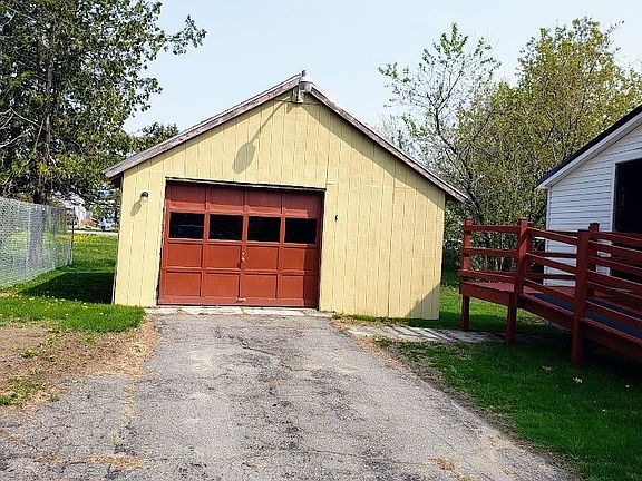 Well maintained home. 2 bedrooms, 2 bathrooms, F.H.A. furnace, heat pump for heat and air conditioning, appliances included, generator hook up, paved driveway and handicap ramp. This property is serviced with public water and public sewer. Nice sunny enclosed porch. Located on a short dead end street. Detached garage needs some TLC. Personal Representative started putting T111 on the outside walls.