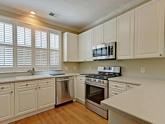Newer construction semi-detached townhome-style condo with TWO CAR GARAGE! plus assigned off street parking space! Location is midway between Colonial Lake (3 blocks) & market (4 blocks), just around corner from Wentworth Mansion 5-star luxury hotel (2 blocks). Shops & restaurants on vibrant King St just 3 blocks away. Kirkland Lane is a hidden gem, a little-traveled lane with a mixture of historic & new homes. The Black Tap coffee shop anchors the south end of the lane. Residents of the street include professionals, students/residents at nearby College of Charleston & MUSC, primary & second home owners. High quality finishes include wood floors, new tile floors in master bath & laundry, stainless steel appliances & solid surface kitchen counters. Please click for Kitchen appliances include a five burner gas range, a built-in microwave, dishwasher & refrigerator. A Rinnai tank-less water heater was installed in laundry room where you will also find room for pantry shelving. The washer and dryer are negotiable. The regime fee includes all insurance and is not much more than insurance alone on a single family home or townhome. It also includes common area electricity (lights at parking spaces), landscaping and mulch/pine straw, termite bond, a contribution for reserves (for parking lot maintenance when required) and a modest management fee. Each owner handles their own exterior maintenance, although the regime sometimes pays for power-washing. The exteriors were all recently painted (have been painted about once every eight years). The regime fee is paid $1247.25/quarter for a total of $4989/year. Of that, the latest budget shows approximately $566 is for flood insurance, $2880 is for other insurance, $1065 is for landscaping and common area lights and maintenance, $225 is the annual termite bond, $400 goes into reserves for any future expenses (like parking space paving), and the rest is for management and tax preparation. The budget, financial statements, covenants and restrictions and by-laws can be provided upon request. City ordinances restrict rentals to 30 days or more in all residential areas. Please pardon condition of street. The city has been doing utility work under street and the street is supposed to be repaved soon, per city councilman we contacted.