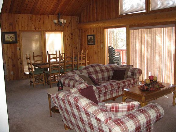 This cute cabin has a lot of recent upgrades. Nice wood burning stove for energy efficiency. Good sized gathering area with open kitchen/living/dining design. 2 bedrooms and a bath on the main level and the master BR and bath is on the upper level. Covered deck for outdoor enjoyment. Easy access and just minutes from the country club and all recreational venues. Just 5 minutes to the ski area. This cabin comes furnished! Just bring your toothbrush.