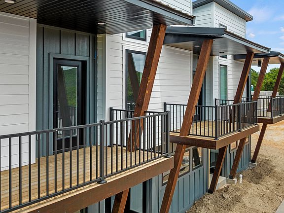 This townhome is one of the closest to the water you'll be able to find on Table Rock Lake, just a gentle sloping walk! This is a brand new, MOVE-IN READY unit that sits pool side so you can walk right out your front door to all the amenities Driftwood Shores has to offer. The open floor plan boasts modern selections including granite countertops, luxury vinyl plank flooring, custom black metal railings, custom built cabinets, modern black lighting/plumbing fixtures, vaulted ceilings, open floor plan, a dramatic shiplap floor to ceiling fireplace and windows galore to be sure you don't miss out on the picturesque views of Table Rock Lake. The exterior gives off some edgy vibes with their sharp, clean lines and bold colors. The community features a swimming pool, pavilion, space for yard games, a children's play area, a rock climbing wall, outdoor fireplace, and 2 boat docks with slips available for purchase! The best part of all is that your grounds maintenance is completely taken care of. All you have to do is come and enjoy the lake and all the Branson, Missouri area has to offer..These units are zoned for nightly rental so they are perfect for investment or just to help pay for that lake home you've always wanted!