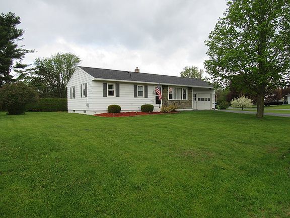 Ranch-style home with attached one-car garage located on a larger corner lot located in Peru NY. Located short distance to restaurants, shopping, schools. Hardwood floors adorn much of the first floor. Bathroom upgraded to double vanity, custom tile tub/shower surround and ceramic tile floor. Laundry already plumbed for first floor. Finished basement great for crafts, rec room, TV room. Municipal water and sewer and natural gas is coming soon. Mature cedar hedge walls the back yard and lends to more privacy. Enclosed patio looks to the back yard. Very efficient Buderus furnace. Roof is new April 2019.