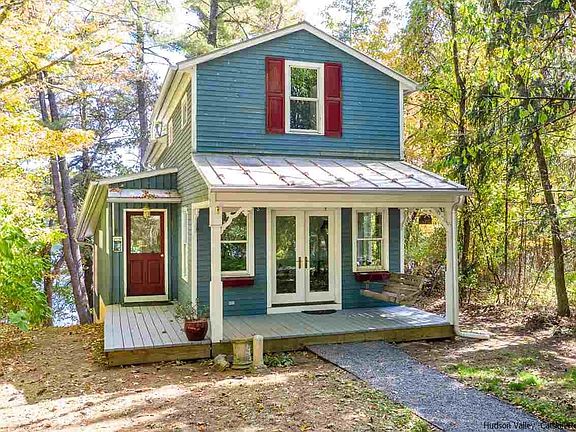 Perched on the shore of Fourth Binnewater Lake in Rosendale, this two-bedroom + den, 2-bathroom home is the Eden that buyers wait for. Sit on the dock and gaze at the glacial lake or dive in for a swim in the crystal water with the assurance that no motorized craft will get in the way. Ice fish in winter or skate across to the rail trail on the other side. The house is more than comfortable with an open living plan that includes a wood-burning fireplace in the living room, fabulous kitchen with pantry and dining area with stunning views. First floor den opens to the covered front porch and easily serves as a third bedroom with adjacent full bath. The two proper bedrooms on the second floor are spacious and share another full bath. There's a screened porch off the living room that overlooks the lake and from there the property steps down to the water.