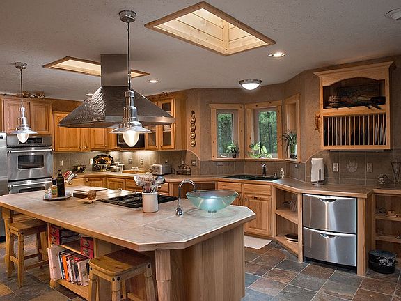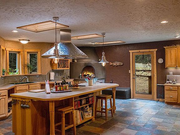 What a perfect mountain cabin for a family get together! This home is just steps from Monte Verde Lake and minutes to Angel Fire Country Club, Fitness Center and PGA rated golf course. 5 minutes and you are at the bottom of the ski slopes...Location, location, location....Easy year round access with beautiful circle drive leading to this land mark home in Angel Fire. The dream kitchen is the gathering place in this almost 3800 sqft home. The kitchen is show piece for the gourmet cook with high end appliances and a kiva fireplace perfect for a pizza or two. The main living space with open kitchen, living and dining, flows to the outdoor entertaining space with double French doors to the landmark circular redwood deck. This house has 3 levels of comfortable living. The Master suite is the entire 3rd floor with private outdoor seating on deck. The main level has grand kitchen with office nook, living room surrounded by walls of glass and anchored with a wood stove, spacious dining room, bedroom, bathroom, and utility room. The lower level has outside entry to second living room complete with ski racks and benches for storage. This level also has 3 more bedrooms, a bathroom, a storage/mechanical room and the double car garage. Don't miss the additional hidden gem off the garage. There is a super, unfinished space that is big, light and bright with double doors leading to the yard. This would make the perfect man cave, studio, office, sewing room, or kids playroom! It is a BONUS space and is not included in the square footage of this home. This home is being sold furnished with few exceptions......