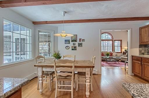 House beautiful, inside & out! Step into elegance and comfort when you enter the large foyer of this 4 bedroom 2.5 bath move-in-ready colonial in desirable south Westford neighborhood. Renovated eat-in chefâs kitchen â Wolf countertop range with downdraft ventilation in island, Wolf wall oven & microwave, SubZero fridge, Bosch dishwasher, granite countertops, tile backsplash and rich cabinetry. Hardwood throughout the first floor including great room with Palladian window, beamed cathedral ceiling, fireplace and French doors to screened porch overlooking patio and backyard. Natural light flows into front-to-back living room thru floor to ceiling windows and French door. All bedrooms feature hardwood including master with large walk-in closet and exquisitely tiled bath with custom cabinets and walk in steam shower. Lower level offers large tiled laundry room and exercise/mudroom. Nearby amenities include, Butterbrook Golf, Jack Walsh playing fields & courts and Bruce Freeman Rail Trail