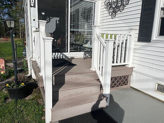 Move right into this 5 Room, 2 bedroom, 1.5 Bath mobile home on Laurel Lane in Montague. Home features, a newer roof, with vinyl siding and windows. Home is heated by a newer heating system, fueled by kerosene. Heating fuel is stored in a double wall exterior above ground tank. Totally re-modelled kitchen with granite counter tops and ceramic back splash. Stainless appliances. Washer and dryer included.Spacious living room with vaulted ceiling and and pellet stove. Some decorative oak woodwork. Beautiful enclosed, front, 3 season porch with sliders. Unheated 10' x 20' den with slider leading to vinyl rear deck and patio area. Meticulously maintained yard with garden area and two back yard sheds for mower and gardening tools. Double wall fuel tank. Low monthly park fee of $248/month. Fee includes water and sewer, road maintenance and land rental fee. Best buy in the area.! Buyer must be approved by park management before purchase. Park owners have first right of refusal on purchase.