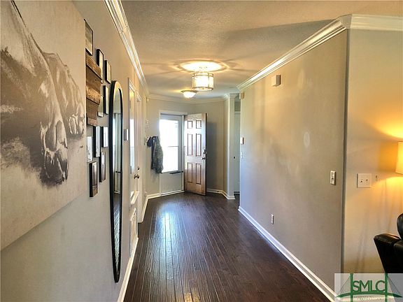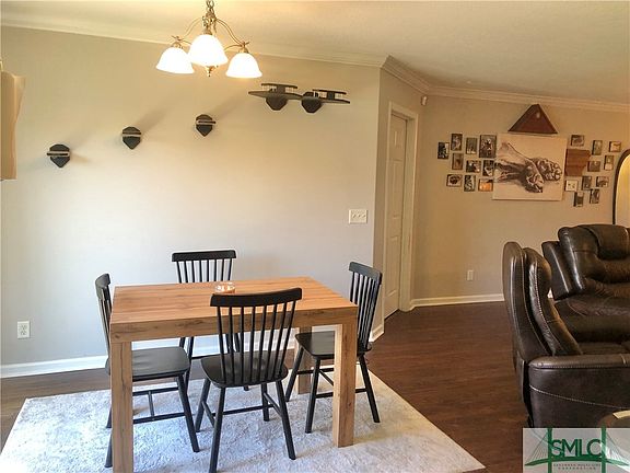 Step into this charming custom home, perfectly positioned across from a serene lake. The spacious foyer welcomes you into an open-concept living area with 3 bedrooms, 2 full baths, and durable hard surface flooring throughout. The kitchen boasts upgraded stainless steel appliances, water filtration at sink, a breakfast bar, pantry, and eat-in dining space. Enjoy the convenience of a separate laundry room — washer and dryer included! The fully fenced backyard features a utility shed for extra storage. Energy-saving solar panels add efficiency, while the community offers a pool and playground. Ideally located near shopping, schools, Gulfstream, Hyundai, and historic Savannah — this home truly has it all!