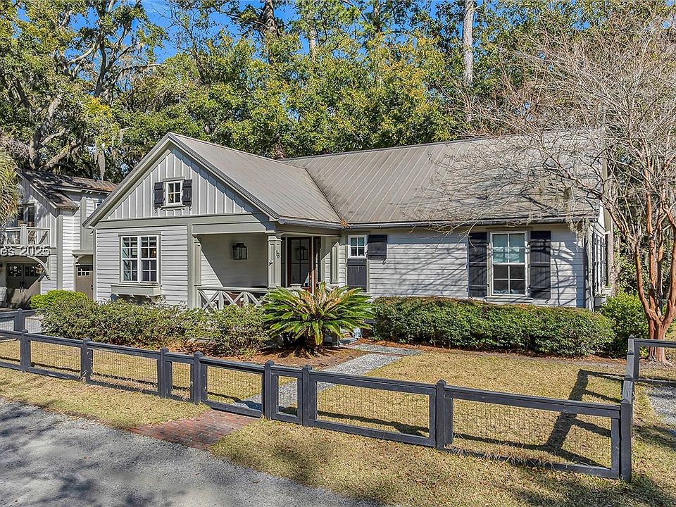 Prime Old Town Bluffton Location! Nestled at the end of historic Lawrence Street, this charming home offers the perfect blend of character & modern convenience. This one-story home features custom-built ins & stunning heart-of-pine flooring, 2 bedrooms & 2.5 baths in the main house, plus huge bonus rm & a strong income-producing garage studio w/ all the bells & whistles--this home has it all. High-end primary bath, upgraded cabinets, a durable 50-yr metal roof -- all lovingly maintained. Just minutes away from shopping, dining, & the stunning May River. Experience the heart of Old Town living in style!