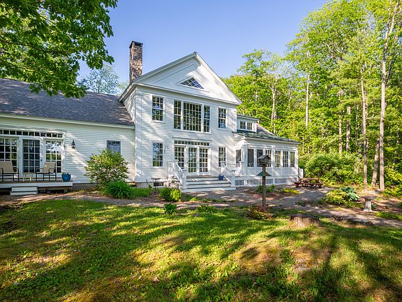 This classically designed and custom-built Greek revival farmhouse is beautifully sighted on and overlooking serene Lily Pond. The home's design and architectural elements echo an age of simplicity and elegance circa 1800, yet, built in 2000s, offers modern era comforts and amenities. Thoughtful choices and exquisite attention to detail make this a truly remarkable property inside and out with: historically correct period trim and millwork; square nailed wide plank pine floors; stone and brick work; historic look thermal pane windows with true divided lights; builtin window sill candle lights; two wood burning fireplaces; radiant floor heat, room by room volume controlled sound system, whole house ''LifeBreath'' fresh air system; central vacuum; wine cellar built with reclaimed wood from 19th century barns; and outdoor stone cooking station; and whole house generator. On the first floor there is a primary bedroom with ensuite bathroom, and French doors which open to a deck facing the pond. There is a grand living room with stone fireplace and south facing pond view windows spanning two and half stories. There is a chef's kitchen with an oversized island, custom cabinetry, and corner dining banquet. The formal dining room is clad in wainscoting. The custom early American library with wainscoting features built-in cabinetry and brick fireplace. There is also screened in porch, laundry room, mud room, and, a finished, insulated, and heated oversized three car garage and work shop with wide plank siding. On the second level of the home are two bedrooms, a full bath, and unfinished room. On the second level of the garage is a workout room, sitting room, office, and half bath. On the lower level is the wine cellar and tasting room. 1.4 acres. 219' water frontage. Beautiful perennial gardens, flowering bushes, and pie cherry trees. Private dead end road, conveniently situated on the Camden Rockport town line about 1 mile from each town's village and harbor.