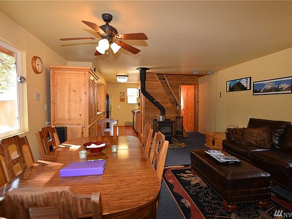 Mazama Cozy Cabin! Come relax and have fun in a beautiful cabin tucked at the end of the road. 2 bed/1 bath home, recently updated, nestled in the heart of the North Cascades near Harts Pass. Hike in the crisp air, sit out on the porch for coffee and enjoy a sauna. Wonderful outdoor patio. Large drive through shop with laundry.