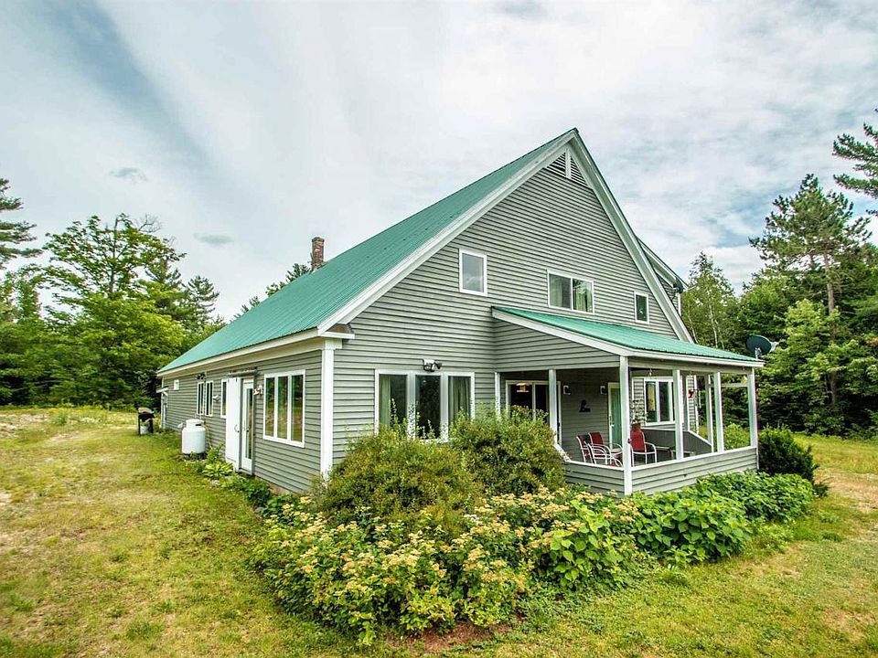Enjoy privacy and Ridgeline Mountain views from this expansive cape style home. Features a large open living room, cathedral ceiling and overall open floor plan. In addition, there is a first floor master bedroom suite with a walk-in closest and full bath. There is main level warm radiant floor heat, a baseboard upstairs, and it is set on a lovely sunny knoll overlooking both the Corn Hill ridgeline and the Western Maine foothills. The house is 3 bedrooms and 2 bathrooms total with extra storage rooms, a workshop/laundry/utility room and 2 car garage, all on 15 wooded acres just 15 minutes outside of Conway and Fryeburg.