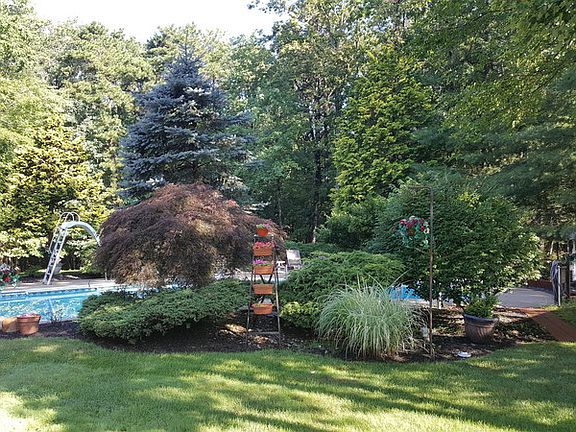 True suburban living in a beautiful, family oriented, 3,000 sq. ft. 5 bedroom, 3 bath colonial on a secluded, wooded lot (approximately 1 acre) with many desirable features FIRST FLOOR 19 x 30 great room with wood burning fireplace and stone wall Upgraded kitchen with tile floor and full granite counters and back splash and large built in hutch Dining room with tile floor Large 14 x 18 tiled foyer with 3 closets Bonus room 14 x 18 currently used as a home office 1 bedroom with closet Upgraded, tiled bath SECOND FLOOR 15 x 30 master bedroom suite with walk-in closet, dressing area and upgraded bath 3 additional bedrooms all with generous closet space Upgraded main bath OUTSIDE Large, beautifully landscaped, and very private, back yard 1,000 sq. ft. in ground, heated swimming pool Large patio with an outdoor kitchen complete with electric and running water 2 utility buildings; 12 x 16 & 8 x 12 - both with electric service Outdoor lighting and electric for night time enjoyment OTHER FEATURES Central air conditioning Ceiling fans throughout 2 car side entry garage with automatic door openers, ample storage and pull down stairs to attic storage 200 amp electric service with quick connect for a generator Underground automatic sprinkler system and storm water drainage system AREA Excellent school district Convenient commute to New York Wide variety of shopping and conveniences nearby