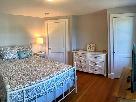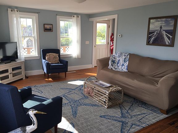 This sweet cottage is perched on the hill overlooking Lowell's Cove. It offers 3 bedrooms, 2 bathrooms, and has been recently renovated. The expansive deck is the perfect spot to sip your coffee or a cocktail while taking in the views and relaxing as the salt air and sunshine take your worries away. This cottage is sure to please, and is wonderfully decorated! It is just a short walk to Lowell's Cove beach which is amazing for swimming or launching a kayak from. Take it from us, this is a great swimming spot! It has some of the warmest ocean water in town! As you enter the house through the mudroom you find yourself in the well-appointed, spacious kitchen. As you continue on you will come to the dining area that is open to the kitchen. A bit further down the hall is the first floor bedroom that offers glimpses into the cove, and a bathroom with an oversized stand-up shower. The light and bright living room offers ample seating and sliders that lead to the large deck. The deck offers great views into and out of the cove, and a dining table perfect for those evening dinners while you enjoy the ever-changing colors of the evening sky. As you ascend the stairs there is a spacious bedroom to the right with views into the cove. To your left is the bathroom with a stand-up shower and washer and dryer. Finishing off the upstairs is a bedroom with a twin bed and a trundle bed. Fully furnished. No Smoking. Utilities not included. Heat, Electric, Plowing and Internet/Cable are billed monthly to tenant through property manager. This house rents weekly May - October and is only available for winter lease. Lease dates Nov 1, 2024 - April 30, 2025. October start dates may be negotiable. Deposit due at time of lease signing. Showings begin in September. More photos and information are available by request.