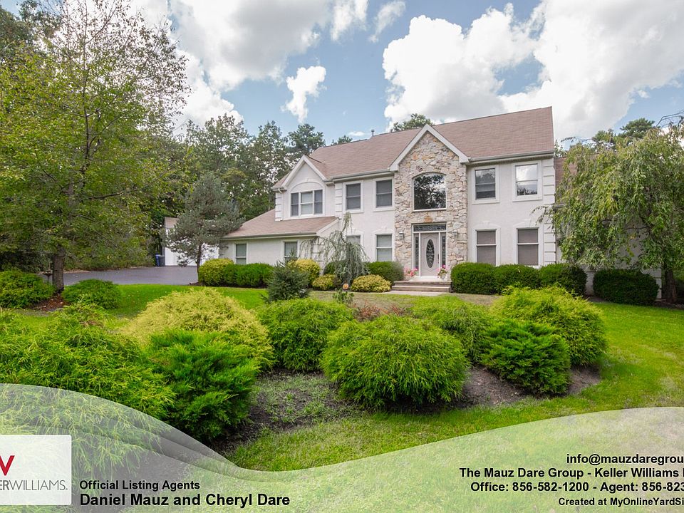 Official Listing Agent: Cheryl Dare. 24 Hour Information Hotline: 1-888-838-3266 x431. Wow! Luxurious living can be yours at an affordable price! Close to Rt 70 and 73 for your easy commute but gives you the privacy we all desire to get away from the hustle and bustle of life. Located at the end of a rural cul-de-sac in the prestigious Eagles Mere development, the outside view of this home is breathtaking. Enjoy the quiet, tree-line view, beautiful, meticulously cared for lawn and landscaping. The inside of this home is impressive with its two-story foyer and generously-sized living room, familyroom, and dining room - cathedral ceilings, bright, natural light, fireplace, and open floor plan make this home perfect for entertaining. Newer hardwood flooring in the foyer and dining room! Welcome to your dream kitchen! Gorgeous updated Cherry cabinets, granite countertops, lovely tile backsplace, large island with a sink built-in and space for barstools, impressive Viking commercial grade appliances, pendant lighting and recessed lighting, and a large above-the-sink window streaming in tons of natural sunlight. This home also has a wetbar with a wine refrigerator and built-in sink! Upstairs are four generously sized bedrooms including the stunning master suite which features a walk-in closet and private, spacious full bathroom with double sinks, a large whirlpool tub, and a stall shower. Outside of this home is a magnificent 2-car garage. Perfect for the landscaper, mechanic, or car enthusiest! The spacious 1.17 acres gives you a generous amount of privacy in your own patch of paradise! Plenty of additional possibilities as well with the full, unfinished basement! If you are looking for a home that is sophisticated, stylish, and luxuriously fitted, this is the home for you! Schedule your tour today! Property is eligible for 100% USDA Financing! Located in NJ Smart Growth Area for Smart Start 100% Financing Program!