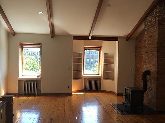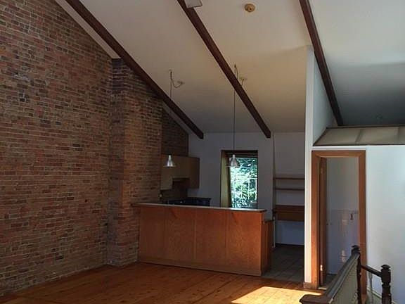 This truly is an apartment one falls in love with. The location is unbeatable, just 2 blocks from Central Square and Red Line. The building itself is a gorgeous brick, Beacon Hill style, townhouse with both a loft feel and old period details. There is 1700 sq. ft. of wonderful living space with beautiful light on 2 floors! 1st level has: 2 spacious/bright bedrooms, one with fireplace, historic moldings, broad pine floors and walk in closet. One bathroom with claw foot tub and washer/dryer. 2nd. level has: Kitchen, Dining, Living, and Deck: Cathedral Ceilings up to 16 ft. high, exposed brick on the whole length of one wall, two 4x4 skylights. A huge open 20x40 living/dining/kitchen floor plan that is just stunning! The kitchen has modern, stainless appliances and has a deck that has the feel of a tree house! A half bath makes this a perfect living area! Includes a shared yard, garden & buildings common areas Parking surprisingly OK. No smoking please.