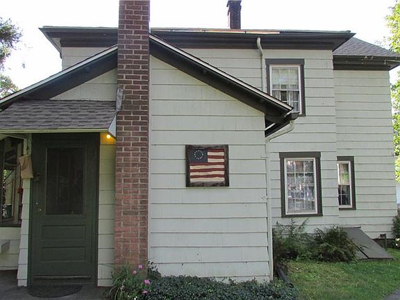 Antique lovers , this is your new home. 1850 colonial set on .41 acre with a fabulous 2 car garage/barn. Glassed in entry foyer with arched copper roof. Lamp post and carriage step Formal living room is 30 feet long, room for all your treasures, plus a formal dining room, library and sun filled enclosed porch. The original well enclosure adds charm to home. Fully applianced kitchen with pantry,laminate floor and painted cabinets. Three large bedrooms, and updated bath and a walk up attic for more living space. The house has a brand new roof, brand new furnace and oil tank. The home is heated with cozy radiators. The two car garage with 220 electricity has a huge barn space on second floor, hay door included. Lovely backyard bordered with a stone wall . 10x12 shed.