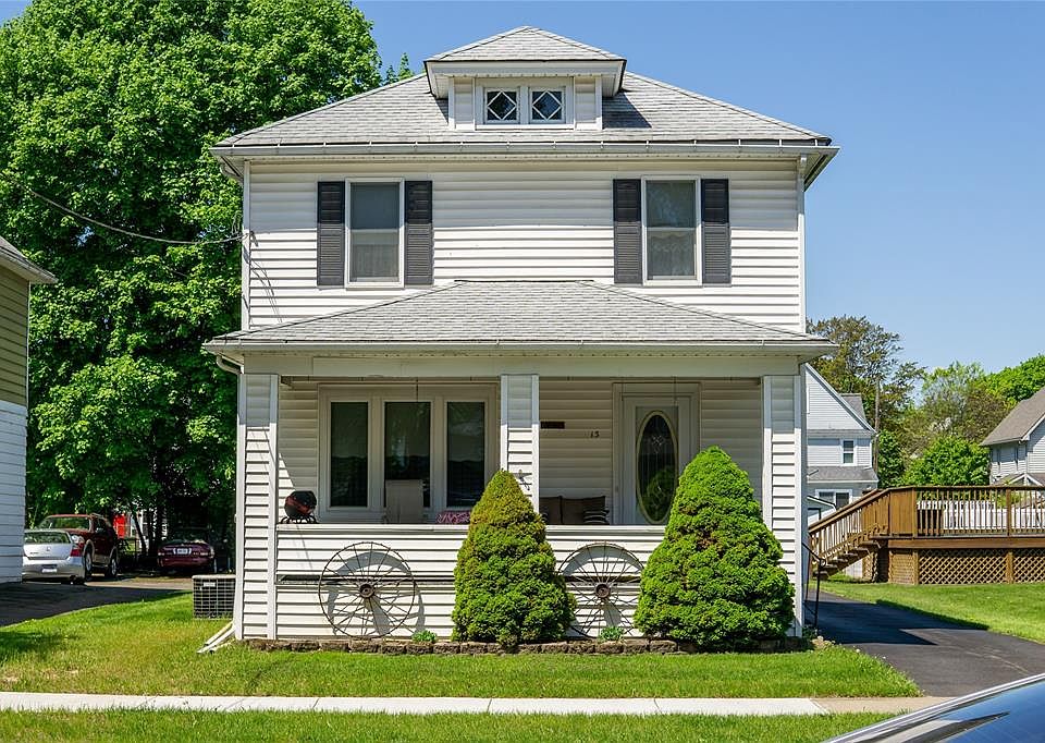 Picture yourself relaxing on the covered front porch of this meticulously maintained home on Binghamton's East Side. Situated on a double lot, the above ground pool and partially fenced yard provide the perfect space for entertaining. An abundance of natural light pours into the kitchen making it the heart of the home. Lovely French Doors can be closed to provide a separate office, study, or a private retreat after a hectic day. Upstairs provides 3 ample sized bedrooms with a walk up attic for storage. Large detached 2 car garage, newer roof, and updated electric make this a must see!