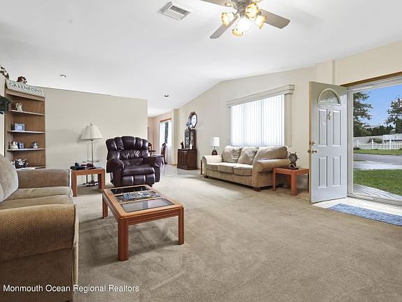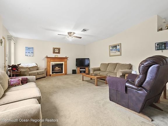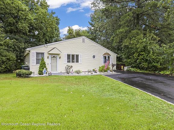 You will not want to miss this wonderful expanded ranch home in a great neighborhood. Large living room with Gas fireplace and Vaulted ceilings. Hugh kitchen with skylights and tons of Oak cabinets. Additional wall Oven and brand new Black Stainless fridge. Master bedroom with a full bath. 2 other generous size bedrooms all with Hardwood under carpets as well as the hallway. French sliders lead to your lovely deck with gas fire pit a perfect space for entertaining. Large Yard with above ground pool with newer liner and filter. Basement is partially finished for extra living space. Laundry area has tons of storage. Pull down stairs for attic for more storage. Walk to NYC bus. Close to shopping, Restaurants and New Jersey Beaches. Make your appointment to see this one today.