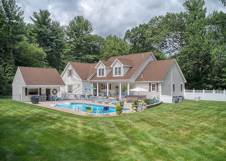 DON'T LET COVID GET YOU DOWN! Simply Breath-Taking Property. Striking Contemporary Cape on 2.8 acres, exudes modern elegance with resort-like amenities inside and out. Located on the MA/NH border offering seclusion and privacy while remaining convenient. Offering 3,151 sq./ft with 3 Bedrooms and 3 baths this custom home ( plans available) will be the envy of friends and family. First floor open concept design features maple hardwoods and cabinets, oversized granite peninsula, GE Superba appliances, floor to ceiling fireplace, and five speaker surround sound. First floor Master Bedroom with bath and walk-in closet along with a 1/2 bath and washer and dryer complete first floor. Second Floor showcases two additional bedrooms, full bath, teen ensuite/study hall, featuring window seats and plantation shutters. Recently completed (2013) 720 sq./ft entertainment gaming room above garage. Oversized heated 2 stall garage. Partially finished basement Featuring Finlandia Sauna. Heated 18x36 inground pool, 6 person master bath, Full Cabana with seasonal 1/2 bath awaits your outside oasis. Know your secure with a state of the art Prominent hard wired security system, and 8KW Generac on-demand Generator. Broker participation at 2%.