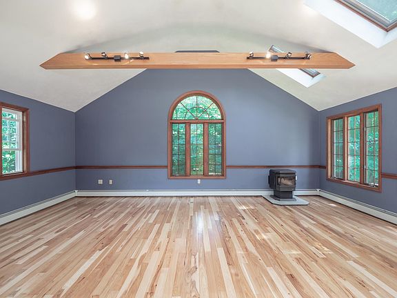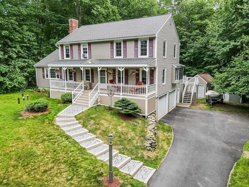 Welcome home to this move-in-ready 4 Bedroom 2 Bathroom Colonial in Derry, NH with an exclusive oversize lot and a spacious farmers porch overlooking a generous well maintained front yard with plenty of privacy. The original owners have lived here for 36 years and have taken impeccable care of this home with continuous updates, such as a new driveway, new windows and skylights. Suitable for large gatherings, the astonishing great room features brand new hickory hardwood flooring and cathedral ceilings with wooden beams. It is bright and sunny with plenty of windows and skylights. Enjoy the warmer months relaxing in the breezy sunroom and keep warm in the winter months with the pellet stove in the family room and the fireplace in the living room. Sit down and relax on your welcoming farmers porch on the comfy hammock swings or glider that are included with the house!
