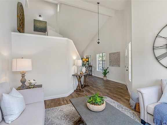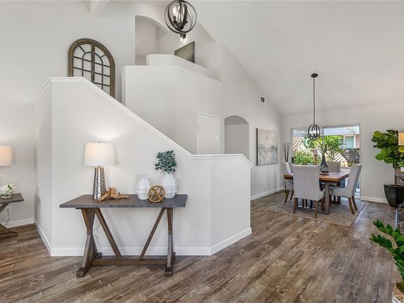 Beautifully remodeled and completely turnkey 3 bedroom, 2.5 bathroom home in a sought-after Rancho Santa Margarita neighborhood. On the main level, cathedral ceilings and an abundance of natural light create an open and bright living space. Updates to the main floor include brand new flooring, new lighting, new baseboards, fresh paint and an updated fireplace. The brand new and spacious kitchen showcases all new soft-close cabinets, stunning quartz countertops, new backsplash, new recessed lighting and new stainless-steel appliances. The formal dining space, perfect for holiday gatherings, is complete with a new chandelier. Up the staircase featuring new carpet and fresh paint, the spacious master retreat boasts an attached master bath en suite with dual sinks and new designer floor tile. Down the hall, the two additional bedrooms are well sized, have new carpet, fresh paint and new ceilings fans. The hall bath has been redesigned with modern floor tile, new vanity and new fixtures. The backyard features a large spa jacuzzi, low maintenance hardscape & fruit trees. Additional updates include a brand new HVAC system, newly painted exterior, new landscape & fresh sod. Located just minutes from Rancho Santa Margarita Lake, enjoy lake membership privileges including private beaches, watercraft rentals, four community pools, a clubhouse, BBQ & picnic areas, & community events & activities. Conveniently located in the heart of RSM near dining, shopping, parks, trails & toll roads.