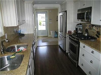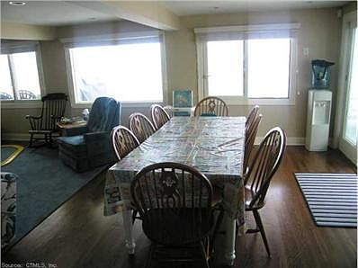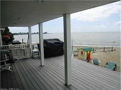 Spectacular Beach Front Home with expansive private beach & views of the Long Island Sound. The main home welcomes you in from a covered entry porch into a large mudroom with French doors that open into the well equipped kitchen with breakfast nook. The kitchen flows right into the dining room with stunning view & access to the covered porch through the sliders. Adjacent to the DR is a bright Living room with water view. The main level finishes up with a full bathroom, laundry & main floor bedroom with custom closet. The 2nd level has a Master Suite that covers an entire half of the upper level. The bedroom has sliders out to a covered porch, a custom WIC and double headed shower, soaking tub with views out to the water & a double vanity. Another bedroom with 3 sides of water views including sliders to a covered porch & large WIC. There are two additional bedrooms each with a custom closet, full bathroom with custom linen closet & an enormous hall closet used for storage that is piped for an additional 2nd floor laundry. The main house has been rented during summer months and then academically for the past several years with a great rental history and many return guests. The Cottage consists of a Bedroom, full bath, laundry, fully equipped kitchen open to the great room with sliders out onto its private deck with water view. The cottage is rented on a yearly basis. Both homes have hardwood floors throughout. There is plenty of off street parking.