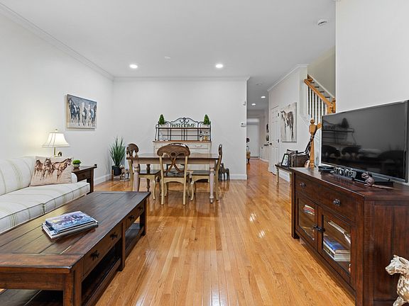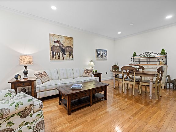 Absolutely stunning 3-bedroom, 2.5-bath Rivington townhouse, freshly painted in neutral tones throughout. The first level features hardwood floors and an oversized eat-in kitchen with a built-in wall unit. Entertaining is effortless with a large granite island that seats three, a breakfast nook, and sliding doors opening to an exterior deck. The spacious living room flows into a separate dining area, creating an open, seamless first-floor layout ideal for both casual and formal gatherings. Upstairs, the primary suite boasts large walk-in closets and an en-suite renovated bath with a modern floating double-sink vanity, beautiful soaking tub, and stunning glass shower. Two additional bedrooms and a hall bath complete the upper level. The lower level offers a mudroom off the two-car garage, plus a large finished space perfect for a home office or media room. The coveted Rivington lifestyle in The Hills includes a private pool and pool house, along with the Main Clubhouse featuring indoor and outdoor pools, fitness gym, yoga studio, movie theater, arts and crafts room, bocce, tennis, pickleball and basketball courts, walking trails, and so much more. Just one hour to NYC and close to highways and shopping-this is the ultimate in leisure living.