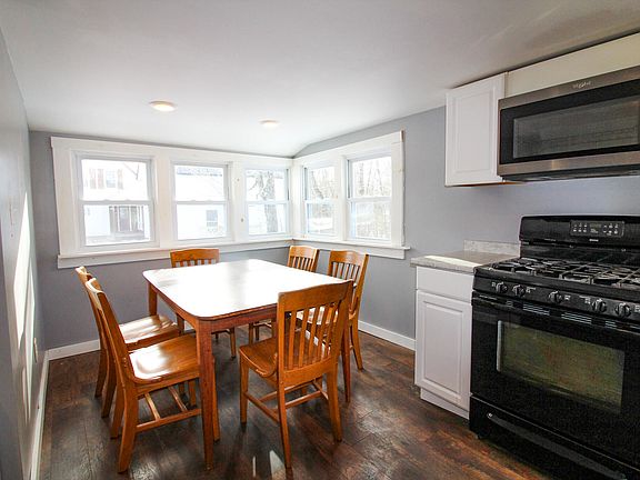 The home is move-in ready, with standout features including a spacious kitchen with an island and breakfast bar seating, a large bathroom, and a generous mudroom / porch entry. The three well-sized bedrooms include one on the main level and two upstairs.