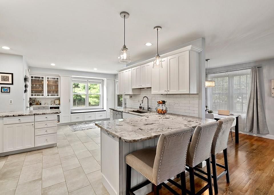 • Kit Dscrp: Countertops - Stone/Granite/Solid, Flooring - Stone/Ceramic Tile, Breakfast Bar / Nook, Recessed Lighting, Dining Area, Bathroom - Half, Stainless Steel Appliances, Cabinets - Upgraded, Window(s) - Bay/Bow/Box, Closet/Cabinets - Custom Built, Open Floor Plan, Balcony / Deck, Exterior Access, Remodeled, Deck - Exterior, Peninsula, Lighting - Pendant, Lighting - Overhead
