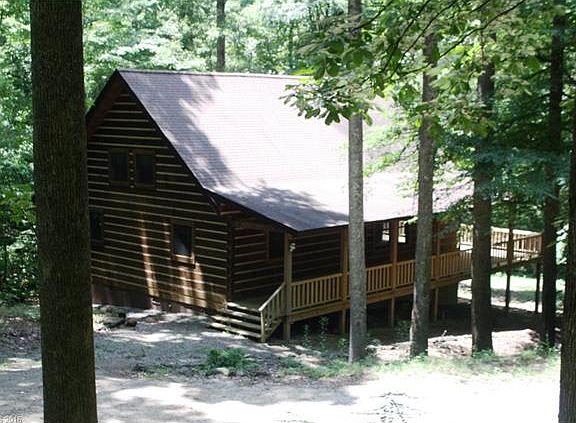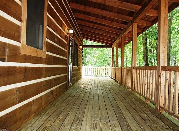 Secluded log home with wrap around porch on 6+ acres. Some level area that can be cleared for gardening. Ceilings to the rafters and open floor plan. Finish loft area for bedroom,bath, and family room.