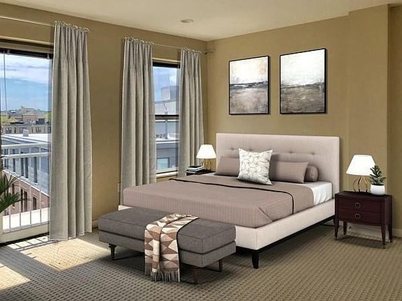 This stunning unit features an expansive floor plan (1084 sq ft) with hardwood floors, brushed metal appliances, and in-unit washer/dryer. Juliette balconies and large windows open up to vibrant city views. The kitchen features beautiful stone counter tops, stainless steel appliances, and a kitchen island with extended breakfast bar.. Plush bedrooms will provide abundant rest after a busy day of working or exploring the city. Private climate controlled parking and storage available.