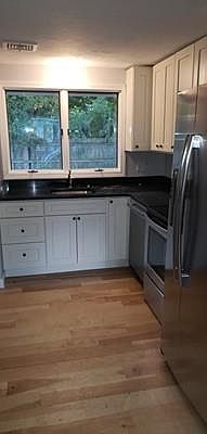 OPEN HOUSE SUNDAY 12-2 PM Open Houses. Remodeled Ranch with NEW architectural roof shingles & vinyl sided exterior. Inside has a brand new Kitchen with granite counter tops as well as Stainless Steel stove, refrigerator, dishwasher & microwave. Washer and dryer Hook ups. Bathroom has been remodeled with new tile surround tub and floor as well as a new vanity and toilet. 3 Bedrooms with new wall to wall carpeting and new doors throughout. New engineered hardwood floors in the main part of the home including kitchen. Garage has been converted to a Den/family room and a new Dining room with slider to a patio in the back yard. Fenced yard with a Shed too. Home also has new FHA/Oil Hydro air system with C/A and TKLS hot water. Plenty of off street parking and easy access to shopping, schools and highways. Come Check out this lovely home.