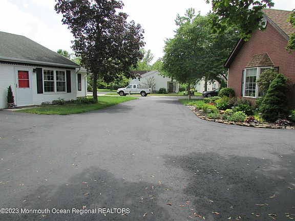 Owner transfer means leaving this recently updated home. So, welcome to Surrey Downes a 55+ adult community located conveniently in western Monmouth County. See attached sheet which contains the recent updates which make this Greencastle Model so welcoming. This is easy living, move in condition. New bamboo flooring, vaulted ceilings in the living room and dining room have had previous popcorn ceiling finish removed and now feature new sheetrock painted ceilings. All updates have been accomplished since December 2022. Entire interior repainted, new floors, hardware, led lighting, light fixtures, black checkered kitchen curtains set off the appliances in the eat in kitchen. Enclosed sunporch just right to sit and relax --put your own touches to this room--maybe finishing by you.