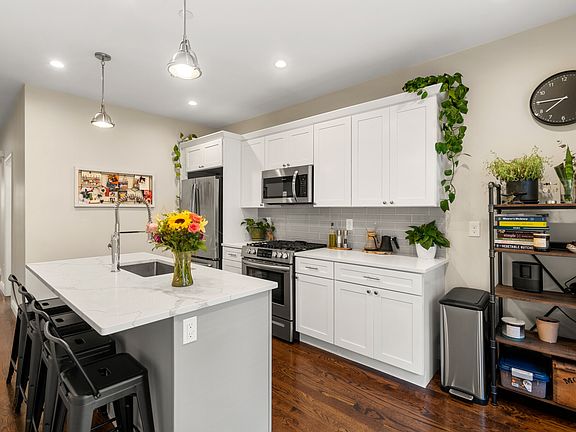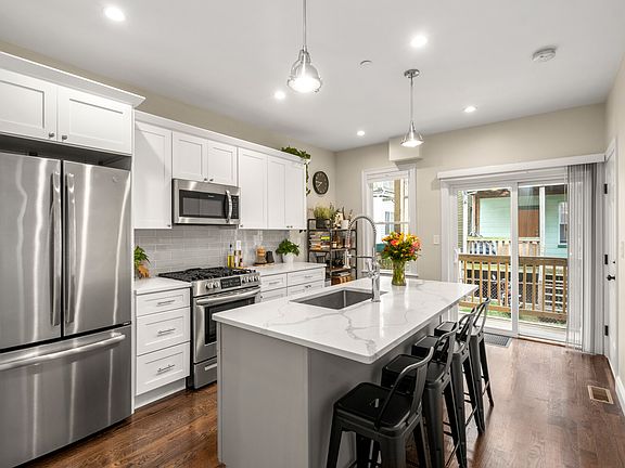 2018 renovation! 2 bed, 1 bath with private deck and common fenced in yard. 3 blocks to the Airport Blue Line Station! Open living space with red oak hardwood floors and impeccable detail and finish work. The beautiful kitchen features a large island & breakfast bar, quartz countertops, stainless steel appliances, gas cooking. Huge master bedroom with lots of closet space. Central air and laundry in unit. Don't miss out on this great East Boston location! Luxury living room sectional couch can be left in the unit for free.