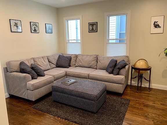 2 bed, 1 bath with private deck. 3 blocks to the Airport Blue Line Station! Open living space with red oak hardwood floors and impeccable detail and finish work. The beautiful kitchen features a large island & breakfast bar, quartz countertops, stainless steel appliances, gas cooking. Huge master bedroom with lots of closet space. Central air and laundry in unit. Common fenced in back yard as well. Don't miss out on this great East Boston location! Available 5/1 Tenant to pay brokerage fee of one month's rent