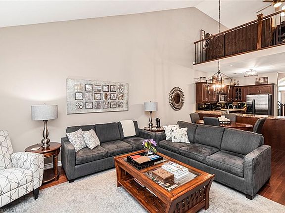 Enjoy the good life in this stunning condo in Garth Trails. Main floor with beautiful hardwood and ceramics- main floor bedroom with full ensuite. Main floor laundry. Open concept living/dining and kitchen (with granite). Upper loft offers a den, an additional bedroom and a full bath. Lower level finished with a rec room and a large “bonus room” that would make a terrific games room or additional bedroom. Separate workshop/utility area. Double car garage. Nothing to do but move in and relax!