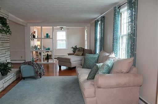 This stately home offers the warm hospitality you'd expect in a traditional New England colonial. A gracious entry foyer greets your guests and opens to living room with gleaming hardwood floors and custom built fireplace. This living room offers infinite adaptability to any decor or color scheme. Hardwood flooring throughout just refinished, and interior freshly repainted. Luxury sized master bedroom features 4 closets, 2 with built- bureaus. See for yourself all this wonderful family home has to offer. Roomy back yard with picnic perfect flagstone patio. Walking distance to bus line, restaurants, Horn Pond recreation area" and more.