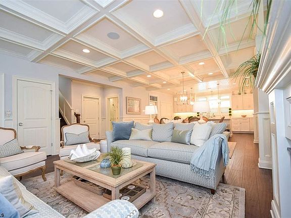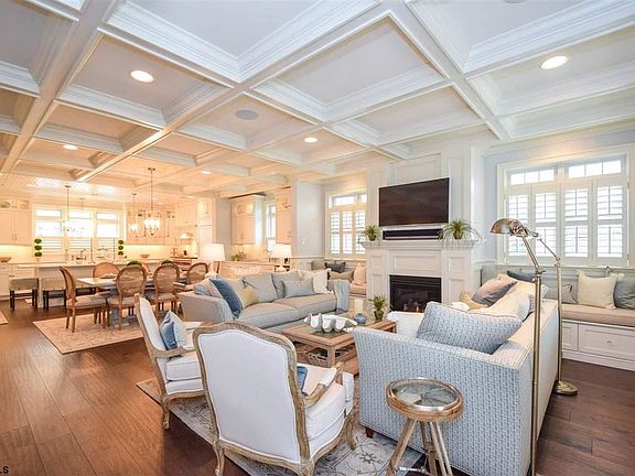 This custom, luxurious home in Longport will exceed your expectations in every way. At only two years young, it was built and designed with everything in mind. Your welcoming first level features an open living space with a gas fireplace and two seating nooks, a den/office, full bathroom, dining area with a wet bar and beverage center. High end finishes include coffered ceilings, wall to wall engineered hardwood, surround sound speakers throughout the home, plantation shutters throughout, an alarm system, camera-enabled doorbell and more. The gourmet kitchen has everything from high end appliances to a large island that can seat six comfortably, under cabinet lighting and a pot filler above the stove. Each bedroom has custom closet and shelving systems and there are decks on each level of the home. Your master suite encompasses the entire third floor and is a private retreat - featuring an extra sitting room with a wet bar and deck, a fireplace in the bedroom, an ensuite bathroom, walk-in closet and dressing room with a vanity/make up area. Complete with an in-ground pool and whirlpool spa, detached garage with a long driveway, outdoor shower and a flower pot watering system. A stunning must-see.