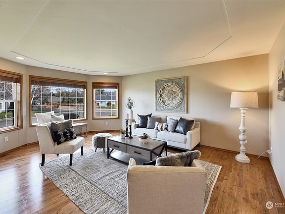 Just in time for Spring and Summer, welcome to your dream home in Ridgeview West, Yakima! Discover comfort in the 3-bed, 2-bath layout, featuring a refreshed primary suite with a modern walk-in shower. Front formal living and dining spaces make way to an open-plan kitchen and family space that looks out to the fully fenced, spacious and lush back yard with a view of the ridge beyond. Nestled on a coveted corner lot, this residence boasts a picturesque, professionally landscaped yard. Relish outdoor living on the back patio and enjoy the convenience of an adorable craft or storage outbuilding. A clean, 3 car attached garage provides ample space for vehicles and workshop. Embrace serenity and sophistication in this sought-after neighborhood.