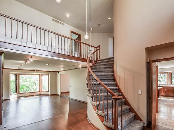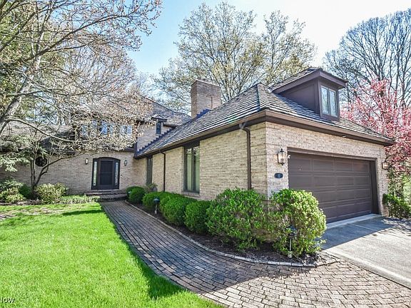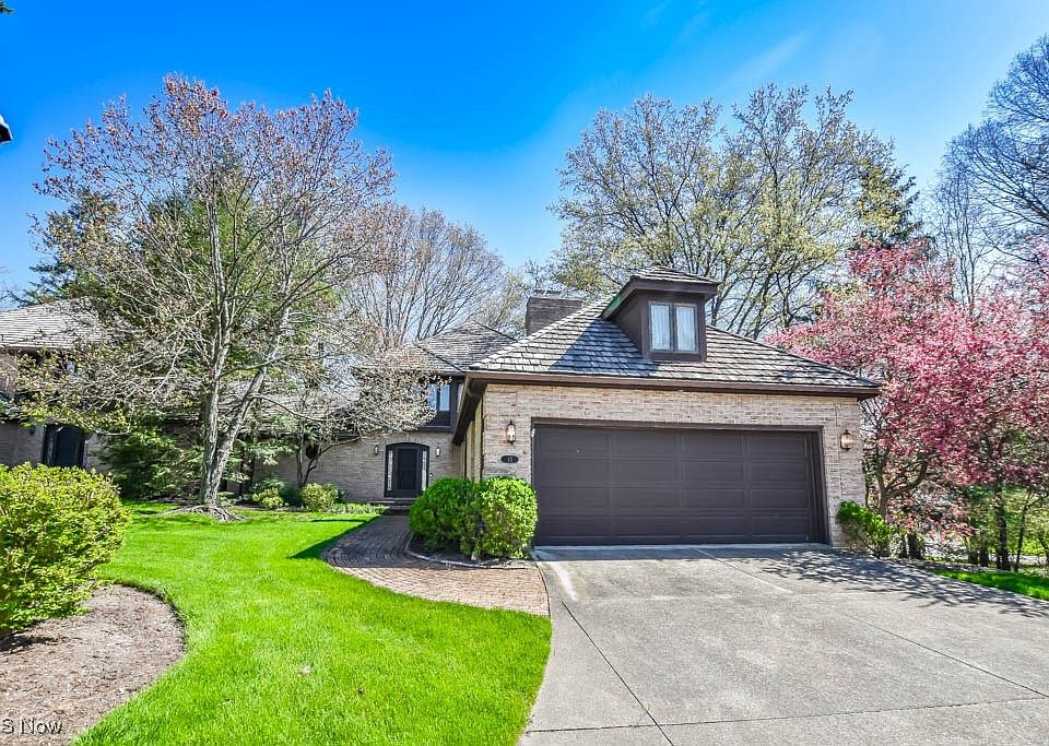 Inviting Zablo built condo nestled in the sought after gated community of Auburn Knolls! Step into the welcoming 2 story foyer opening into the living room, featuring a bayed window, built-in bookcases, and elegant hardwood flooring extending throughout the main level. The formal dining room, accented by crown molding and balcony access, flows seamlessly into the chef-inspired kitchen boasting beautiful wood cabinetry, stainless steel appliances, Corian counters, a center island with prep sink and cooktop, along with a dish sink offering picturesque views of the wooded surroundings. Adjacent is a vaulted family room with a cozy gas fireplace, work station, and French doors leading to the deck. A convenient guest bath is nearby. Retreat to the spacious 1st floor master suite, complete with a walk-in closet and a spa-like bath featuring a jetted tub and step-in shower. Ascend the curved staircase to discover two additional bedrooms, each with bayed windows and access to full bathrooms. The finished basement is flooded with natural light, offering two rec areas, one with access to the brick patio, along with the 4th bedroom and another full bath. The unfinished side includes an exterior door for easy storage. With an attached two-car garage and a prime location close to North Canton, Belden Village, and the highway, this exceptional home is a must see!