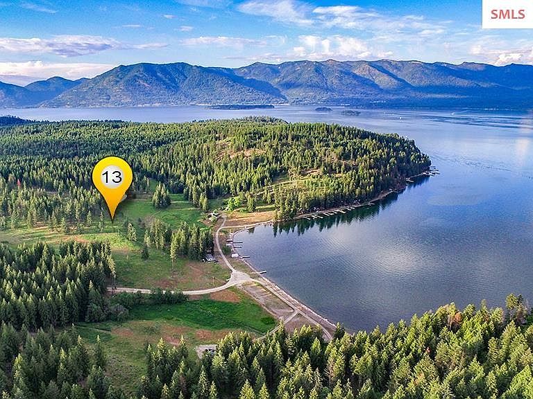 Lot 13 is a 2.02 acre parcel with a community boat dock slip on Lake Pend Oreille with paved roads, trails and open space throughout the community connecting to adjacent public lands, as well as high speed fiber optic internet, and a community lakefront recreational area. Minimum 5 GPM well included. Just 30 minutes from downtown Sandpoint the home of Schweitzer Mountain Ski Resort! Don’t miss the opportunity to own acreage on famed Lake Pend Oreille. The conceptual master plan is for illustrative purposes only and is subject to final county approval.