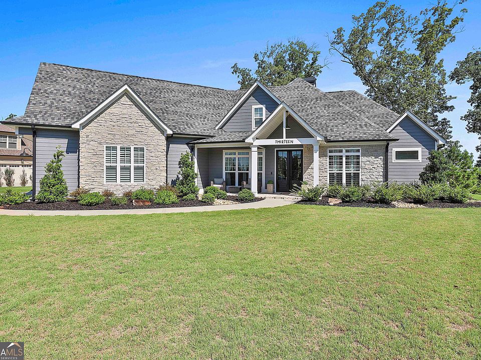 Welcome to this stunning modern farmhouse which perfectly blends rustic charm with pure elegance. This well-appointed ranch-style home with split plan is in the highly desirable Northshore at Lake Redwine Community in North Coweta County. Home features all of the curb appeal and neighborhood amenities that a homeowner would desire. MAIN LEVEL: Inviting foyer entrance that seamlessly leads you into the beautifully designed family room featuring an expansive ceiling with wooden beams, stone fireplace and custom built-in shelving. Open formal dining room with impressive board and batten trim. Wonderful office space/playroom that provides versatility for your lifestyle needs. Tranquil owner's primary retreat with trey ceiling and primary bathroom featuring separate vanities, his/her custom closets and large walk-in tiled shower. Chef's kitchen includes stainless steel appliances, gas cooktop, convection microwave, walk-in pantry, popular farmhouse sink and generous sized island ideal for cooking and entertaining. Large laundry room off of kitchen with custom cabinets and utility sink. Two additional bedrooms with Jack and Jill Bath. UPPER LEVEL: Bonus/ 4th Bedroom/Teen Suite/Guest Suite with Full Bath. SPECIAL FEATURES: Hardwood flooring, designer tile and quartz counters throughout, tankless water heater, 4" plantation shutters, recessed lighting. Relax on the spacious front porch or entertain on the oversized covered back porch by the cozy fireplace while enjoying the professional extensive landscaping. Excellent schools, minutes to ATL airport and Downtown Atlanta! NEIGHBORHOOD AMENITIES: 300-acre pristine lake, large pool with splash pad, covered pavilion with fireplace, playground, lighted tennis /pickleball courts and neighborhood sidewalks
