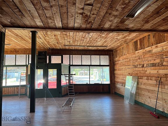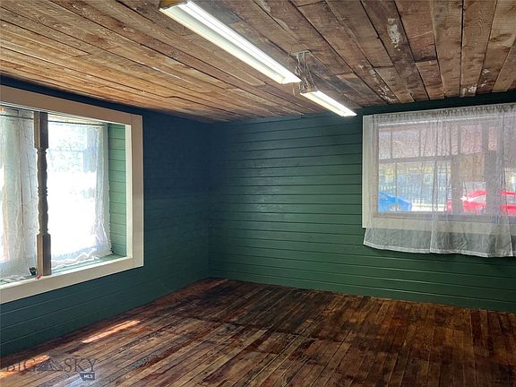Historical 3752 sf building on the main street of Reed Point. The front of the building, 972 sf., could be a retail space/office with large windows facing the street. The middle of the building, 2160 sf has been converted into a residence with 4 bedrooms and 2 bathrooms with a huge kitchen/dining room that has been remodeled with a rough cut lumber ceiling and space enough for an 8' dining room table. The Livingroom has wood and stone flooring and a wood stove to cozy up to on a cold winters night. Above the water fountain feature there are skylights, letting in lots of natural light. The second level has a loft/family room and three bedrooms with large closets and a bathroom with a clawfoot tub and a shower. The house has many fixtures still remaining from the bygone days. The back part of the building, 630 sf is a workshop for all your hobbies. A tiny house with a tower in the backyard is a fun feature to the yard and a covered patio. Bring your ideas. So many possibilities!